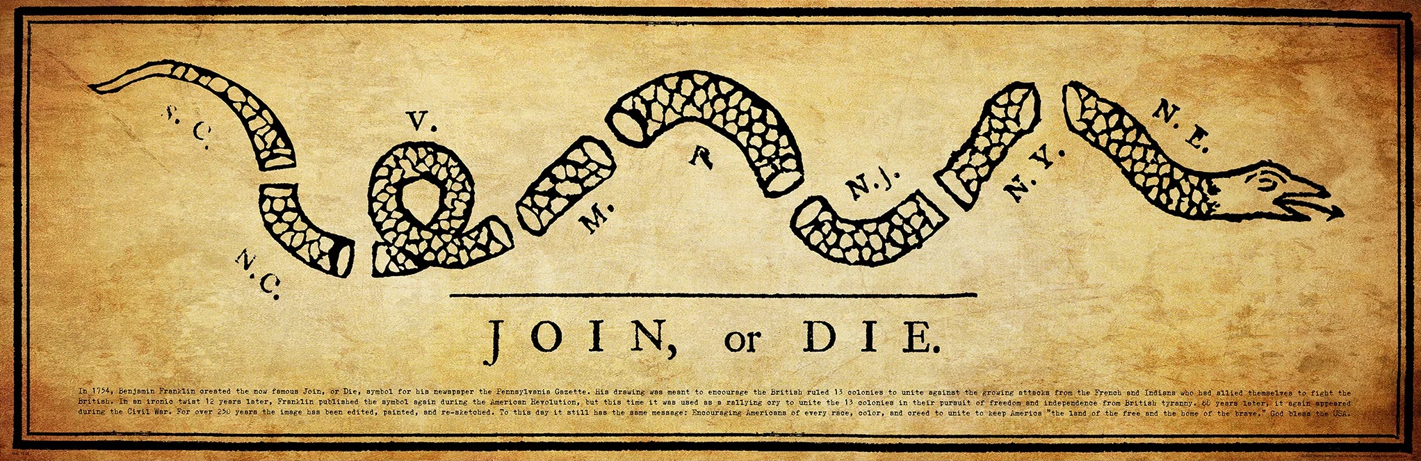 (Above) Famous early US History cartoon from 1754, attributed to Benjamin Franklin! Was he thinking about our APUSH Class???